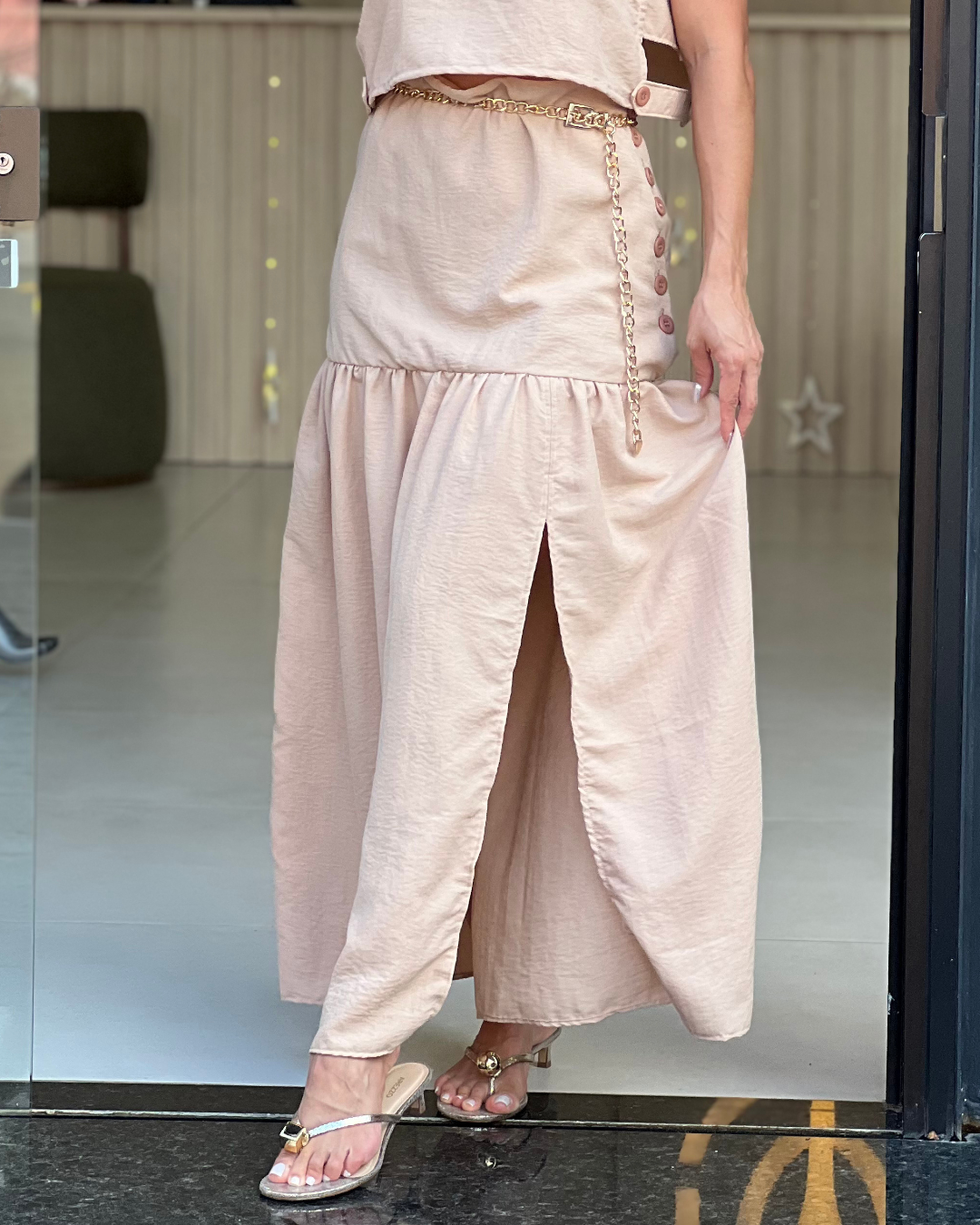 A blusa cropped é perfeita para criar looks cheios de estilo, aproveite para compor com nossa saia longa.
