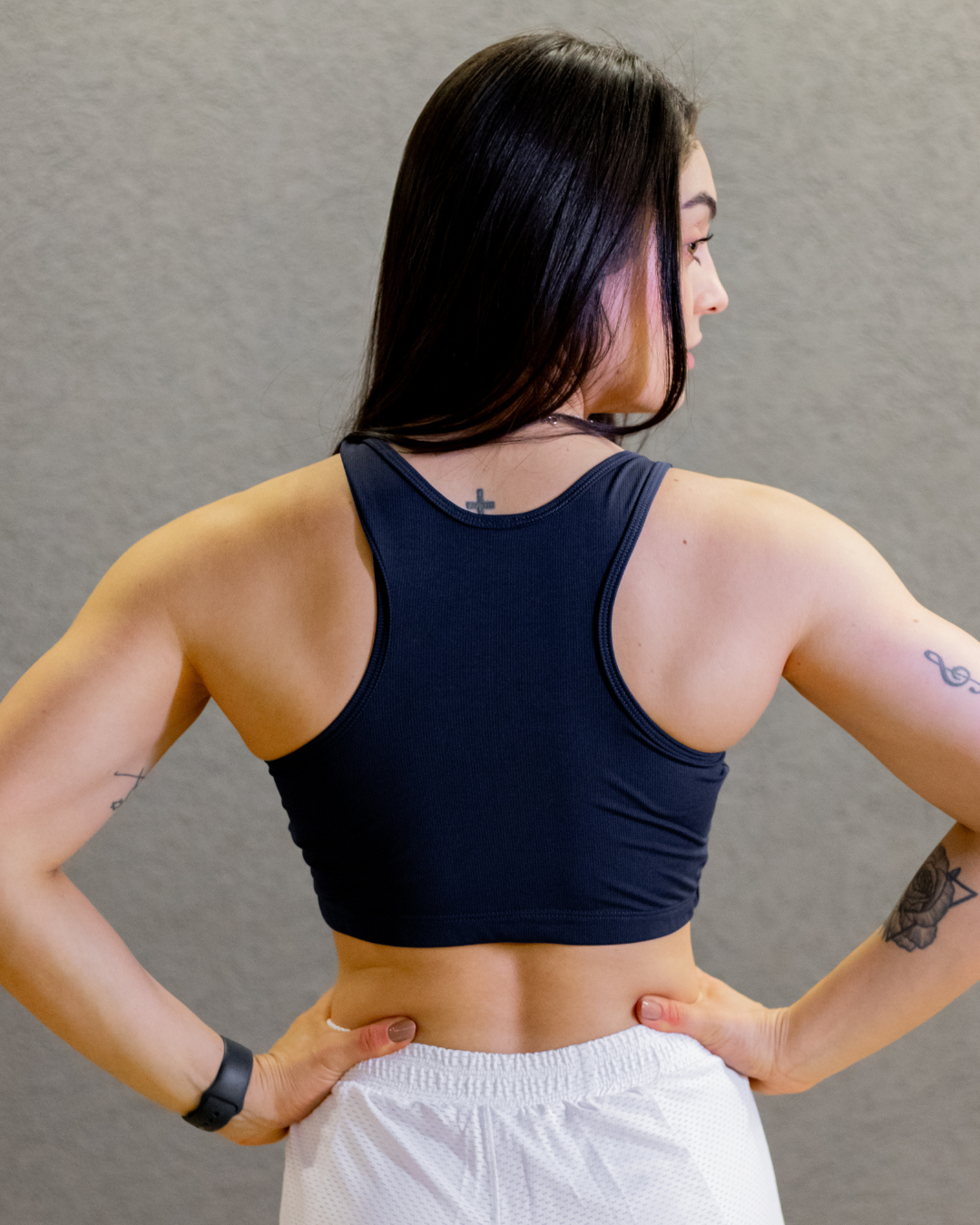 O design nadador e os detalhes em tule nas laterais conferem uma pegada moderna e elegante ao top, tornando-o uma opção versátil para usar em várias ocasiões. Seu design diferenciado permite que seja utilizado tanto nas atividades físicas quanto em momentos casuais, garantindo um visual deslumbrante e estiloso em qualquer situação.
