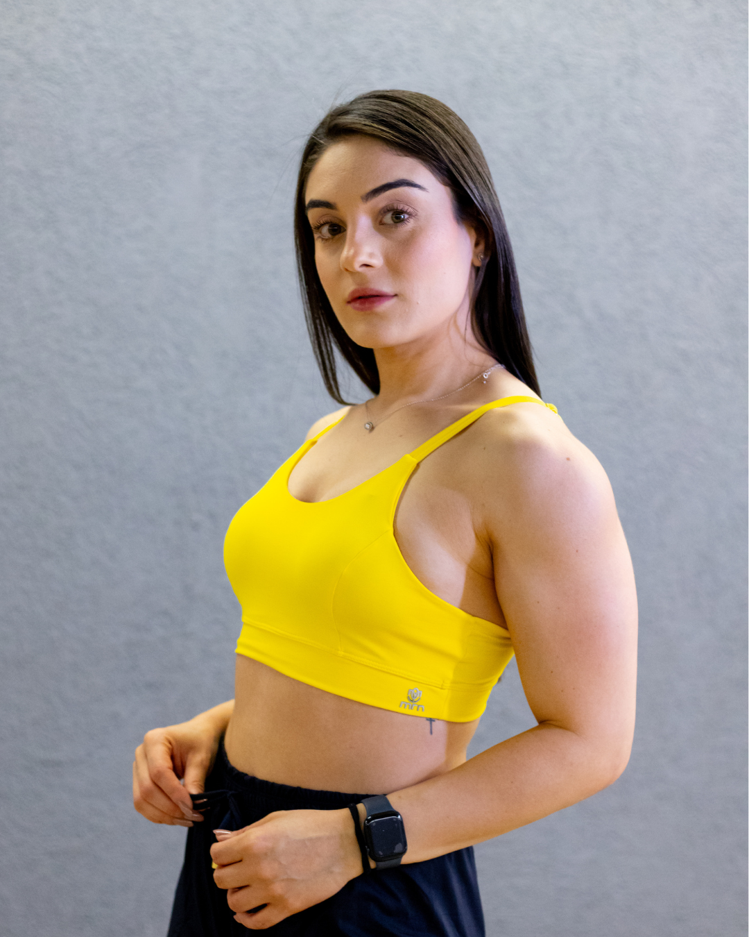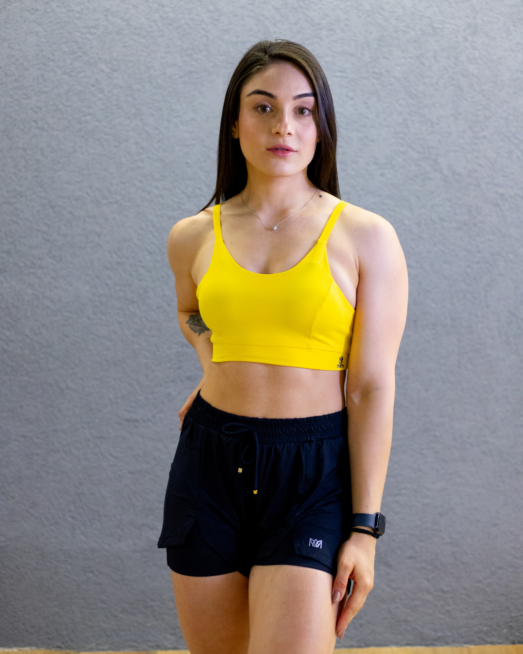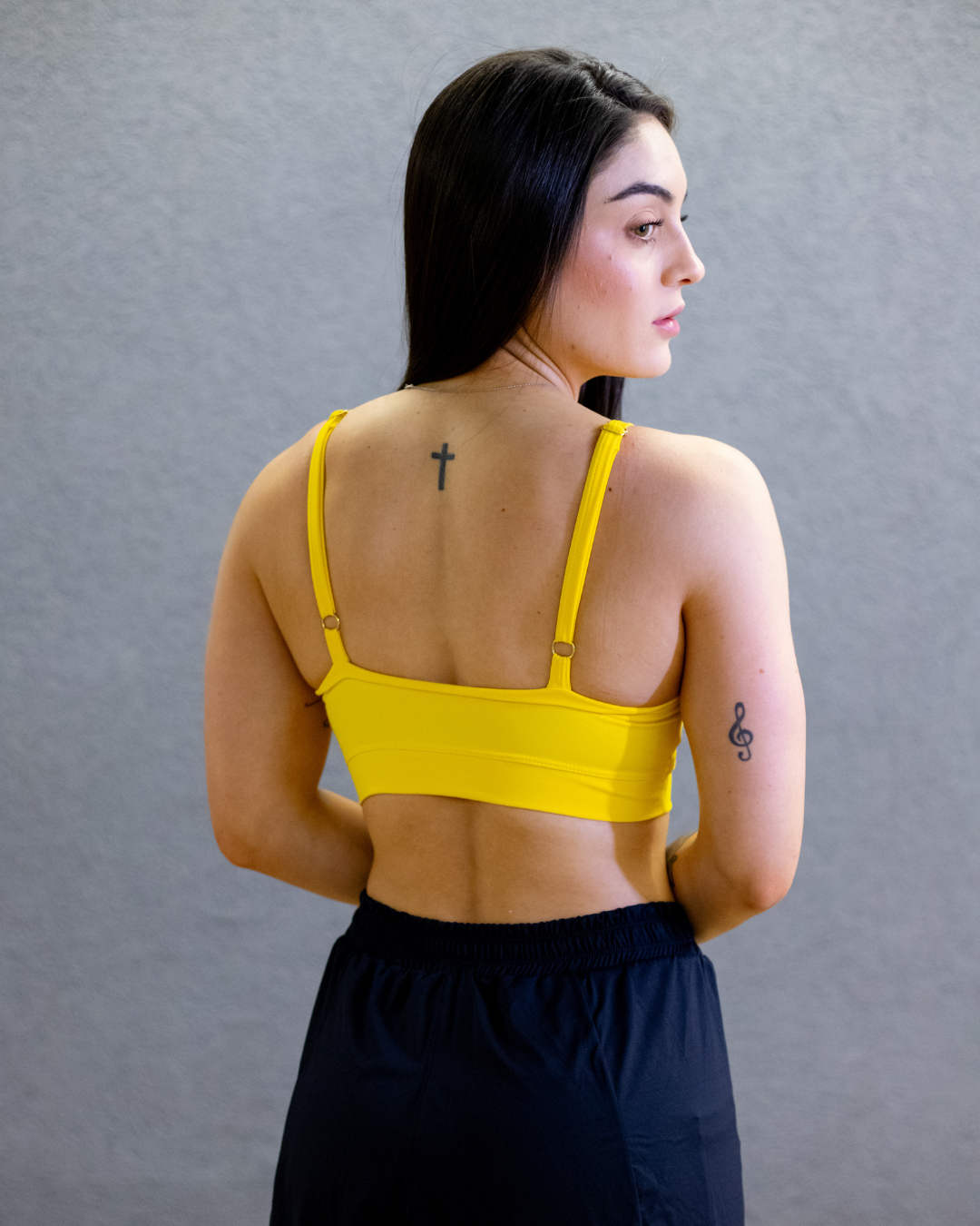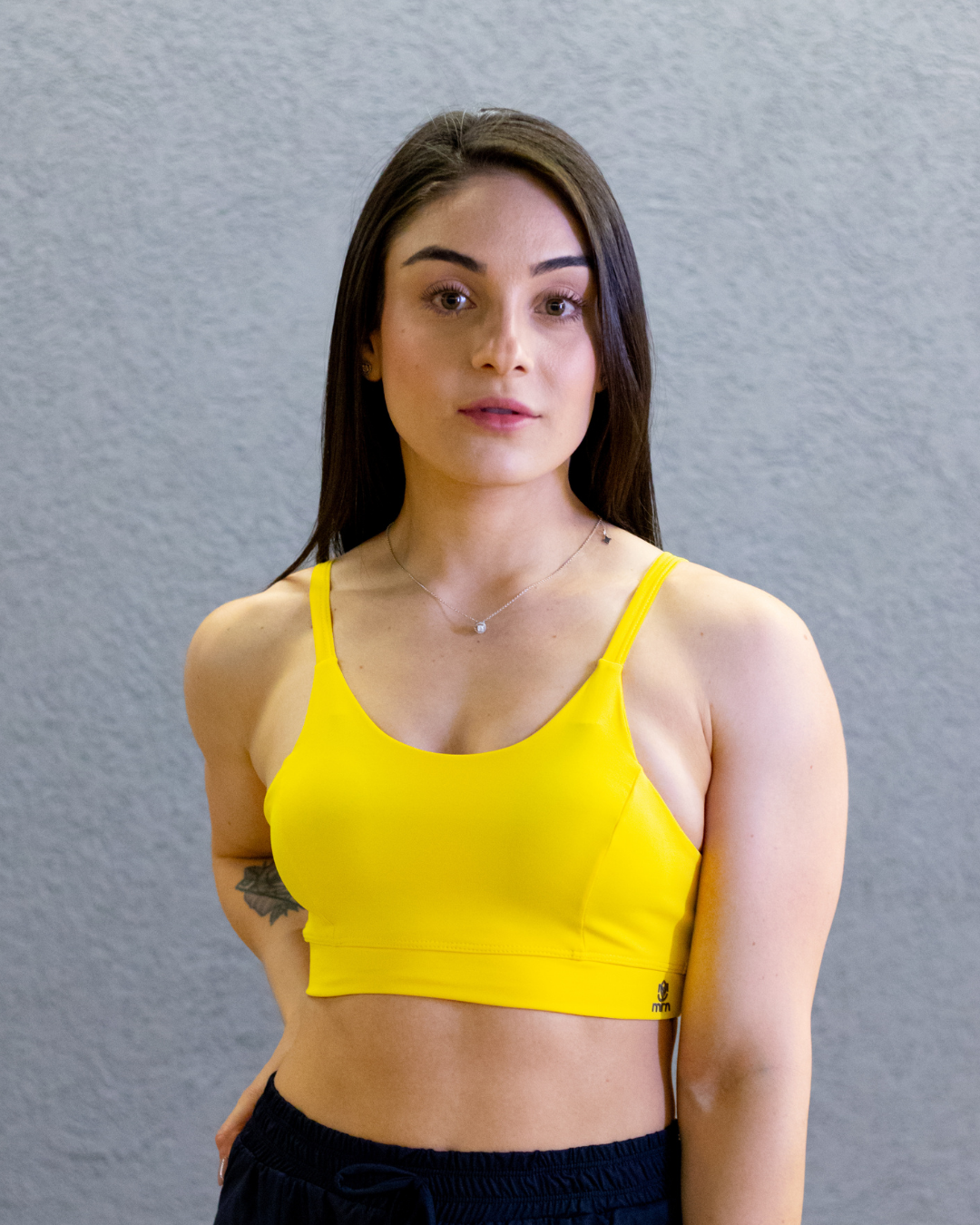 A composição do tecido é de 85% Poliamida e 15% Elastano, garantindo elasticidade, durabilidade e conforto. Não hesite em adquirir o Top Basic Harmonia com Detalhe M Costas para adicionar um toque de inovação, estilo e conforto à sua rotina esportiva.